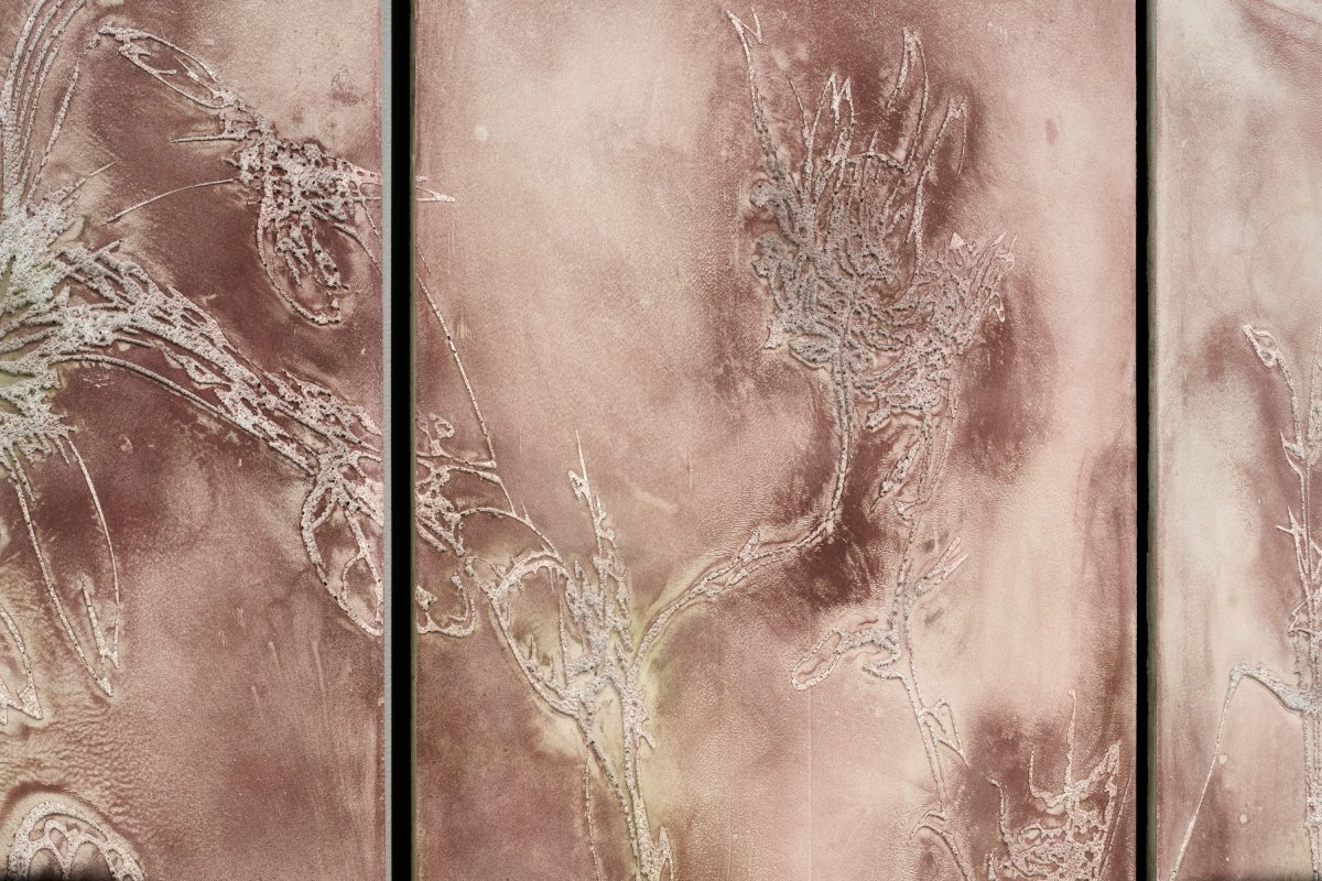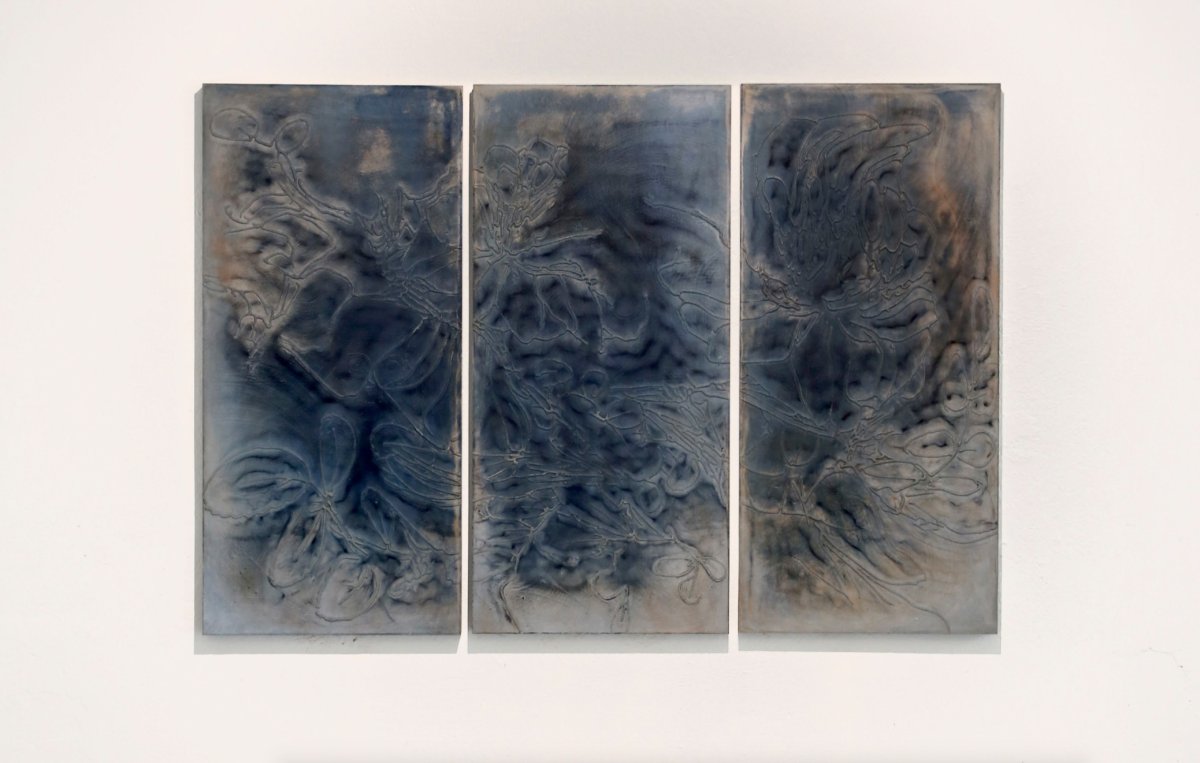 Stanislav Zábrodský, Tendrils, 2024, triptych concrete relief, 120 x 160 cm