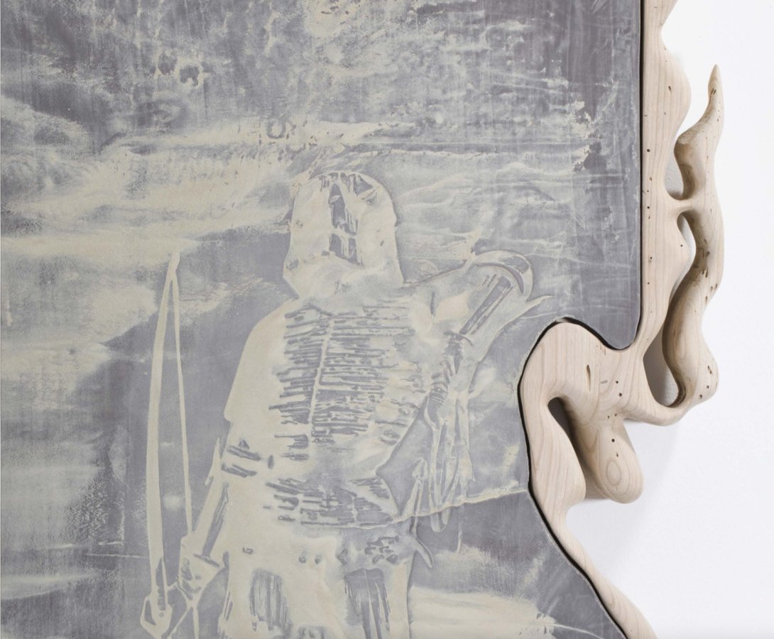 Stanislav Zábrodský, Kaulbach's Backstories, 2022, ceramic relief, cherry wood frame, 68 x 45 cm (detail)