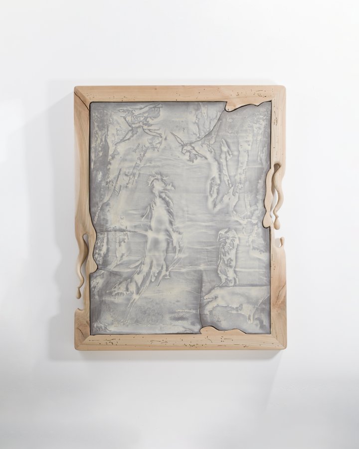 Stanislav Zábrodský, Kaulbach's Backstories, 2022, ceramic relief, cherry wood frame, 68 x 45 cm
