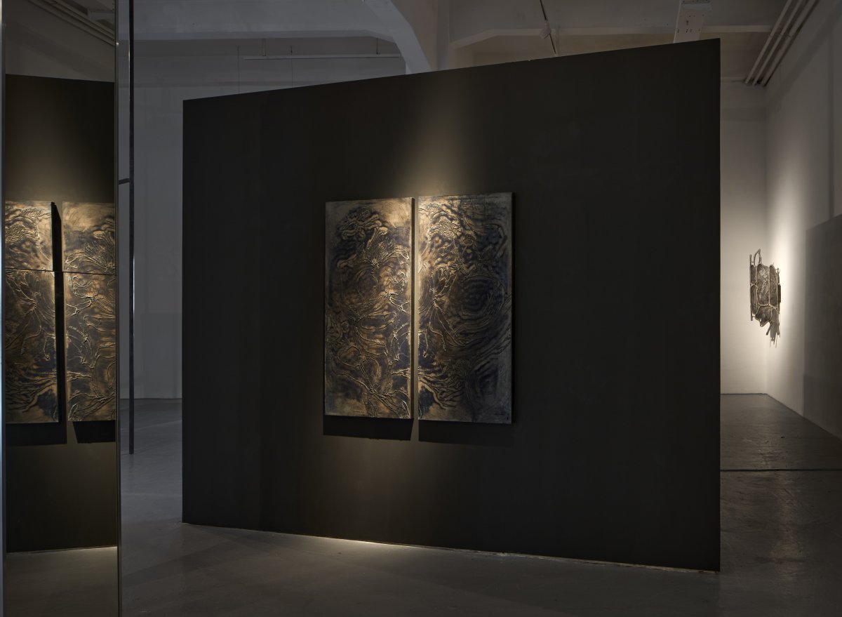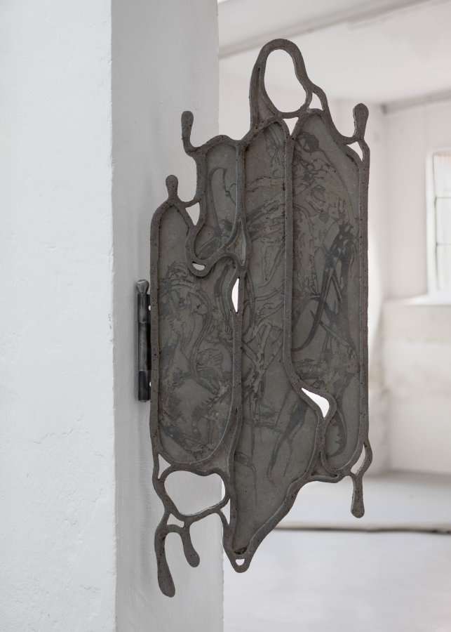 Stanislav Zábrodský, from series Whim Flips Over, 2025 (quadriptych), concrete relief, pigment, metal frame, 235 x 107 cm
