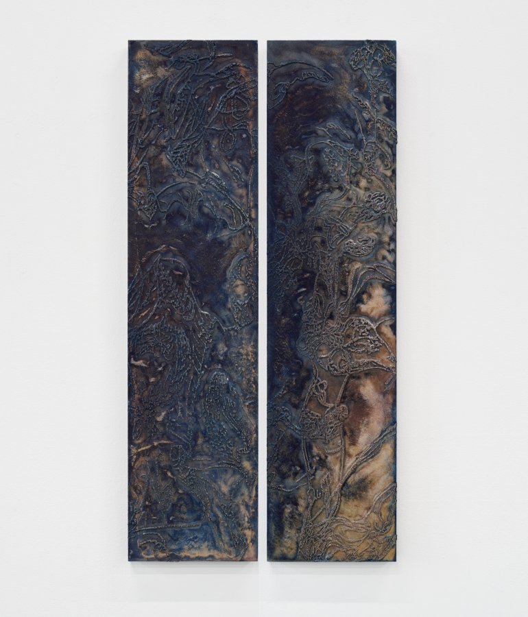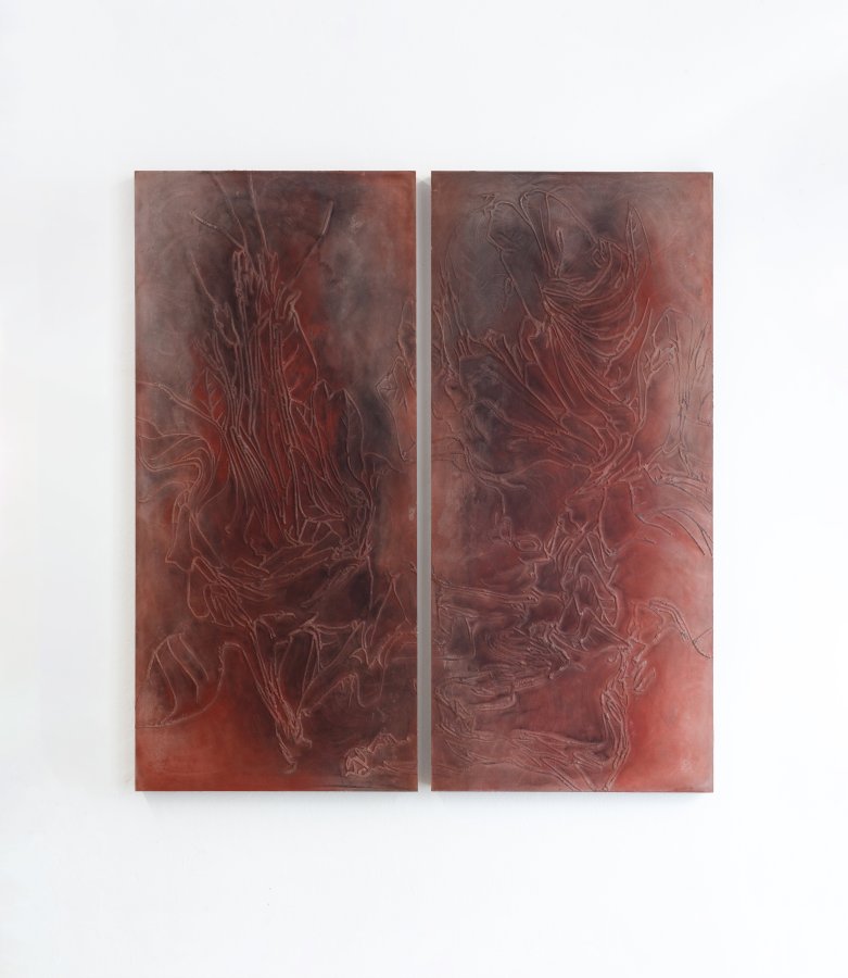 Stanislav Zábrodský, Untitled, 2024, diptych concrete relief, pigment, 121 x 107 x 4,5 cm